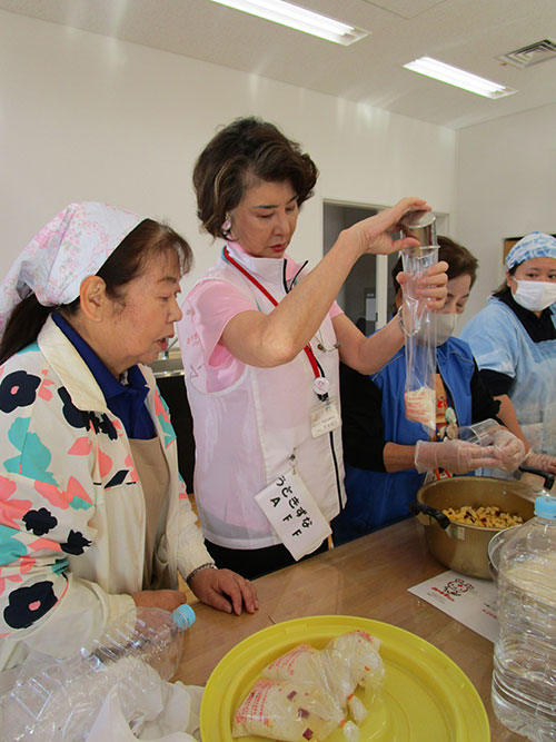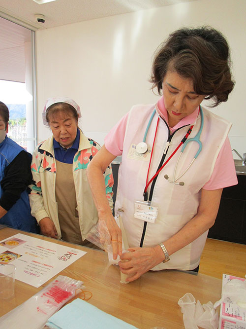 アタシも健康相談の合間をぬって、日赤奉仕団のブースで炊き出し訓練というのに参加してみました