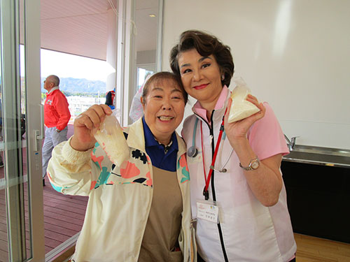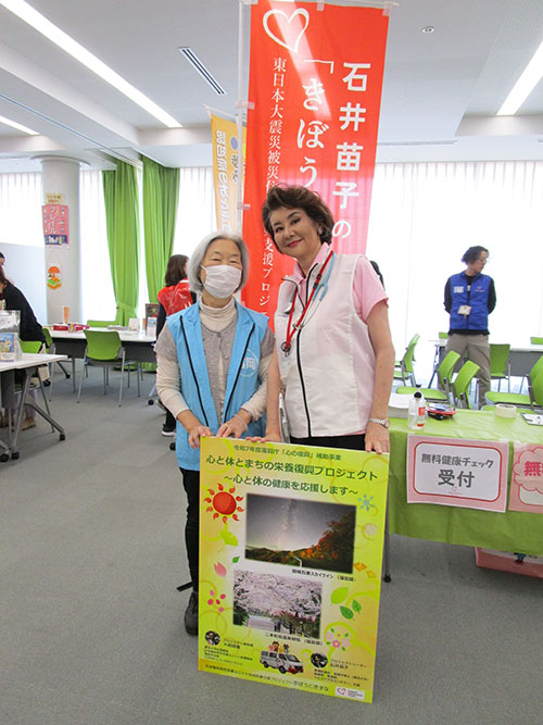 石井の隣は富岡町婦人会会長の美奈子さんです。石井とは震災直後の避難中からの長いお付き合いで、当時、美奈子さんは避難により離れ離れになった富岡町のみなさんを取りまとめ、帰町が始まってからは町の復興のために全力で尽くされています。現在では双葉郡全体の婦人会の会長も兼務され、石井は美奈子さんの明るい笑顔にいつも元気づけられています。