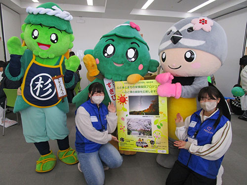 愛らしいゆるキャラたちも応援にきてくれましたよ! 学生たちも嬉しくてこの笑顔です。