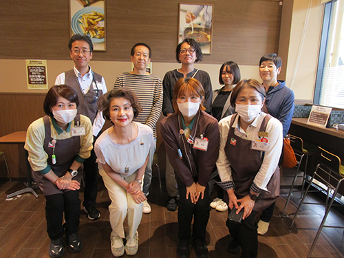 茂庭店での活動でお世話になった2代目店長さん・副店長さんがこの春、交代されるとのことで、活動最後にみんなで記念撮影をしました。石井も甘利理事長もスタッフも、感謝の気持ちでいっぱいになりました。